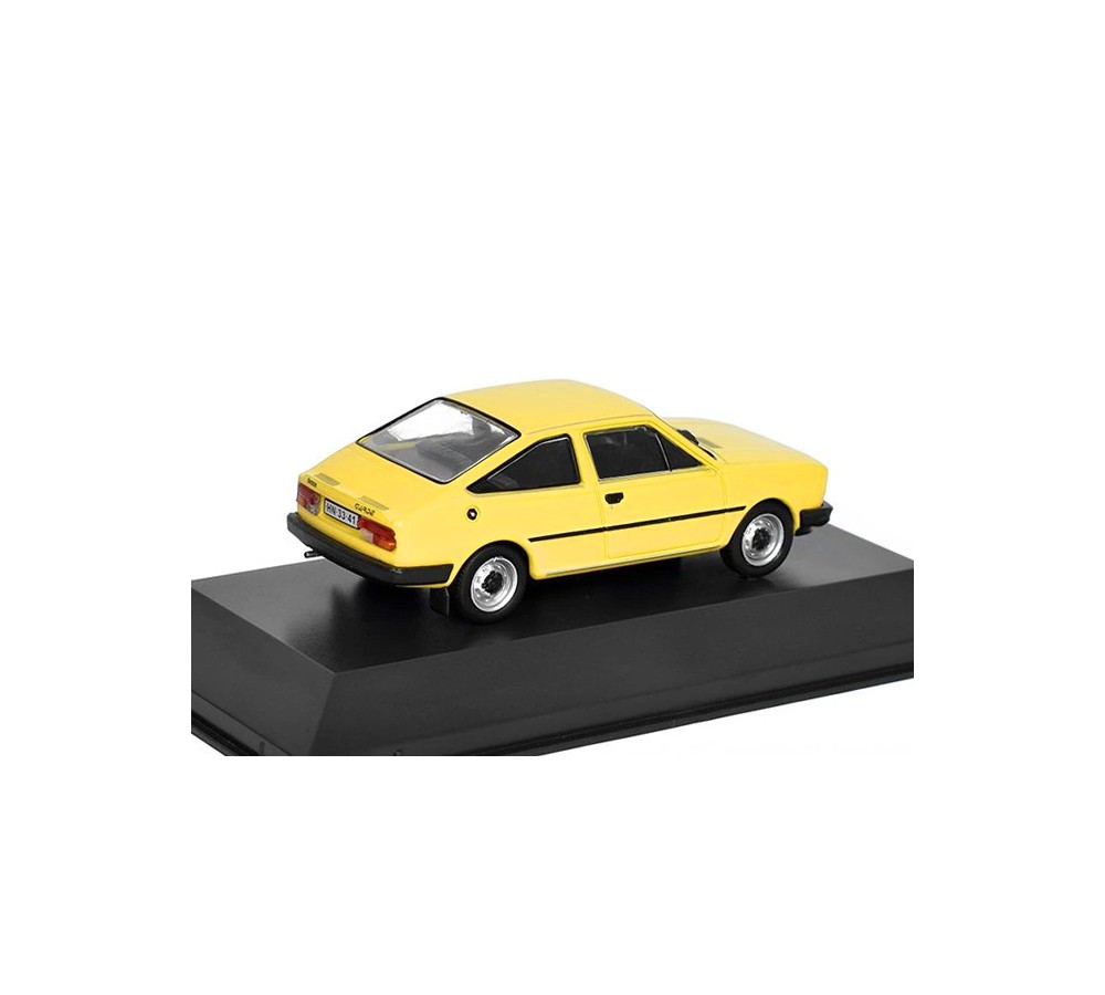 Balení: podstavec se jménem vozu, pevná bublina z tvrdého blisteru, časopis s popisem modelu