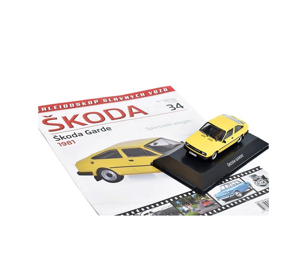 Model ze série Kaleidoskop modelů slavných vozů Škoda a časopis